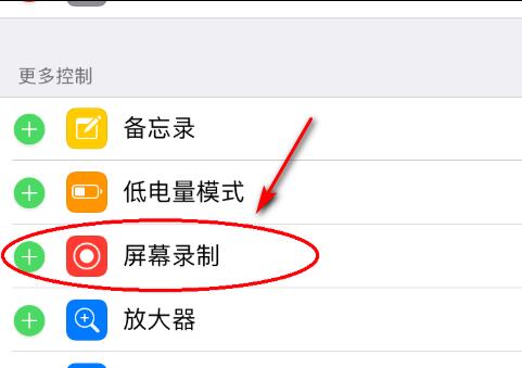 在控制中心界面中,找到【屏幕录制】功能键,并点击绿色+号按钮将其添加到“包含的控制”中。这样,在控制中心页面就可以看到新增的【屏幕录制】功能键了。